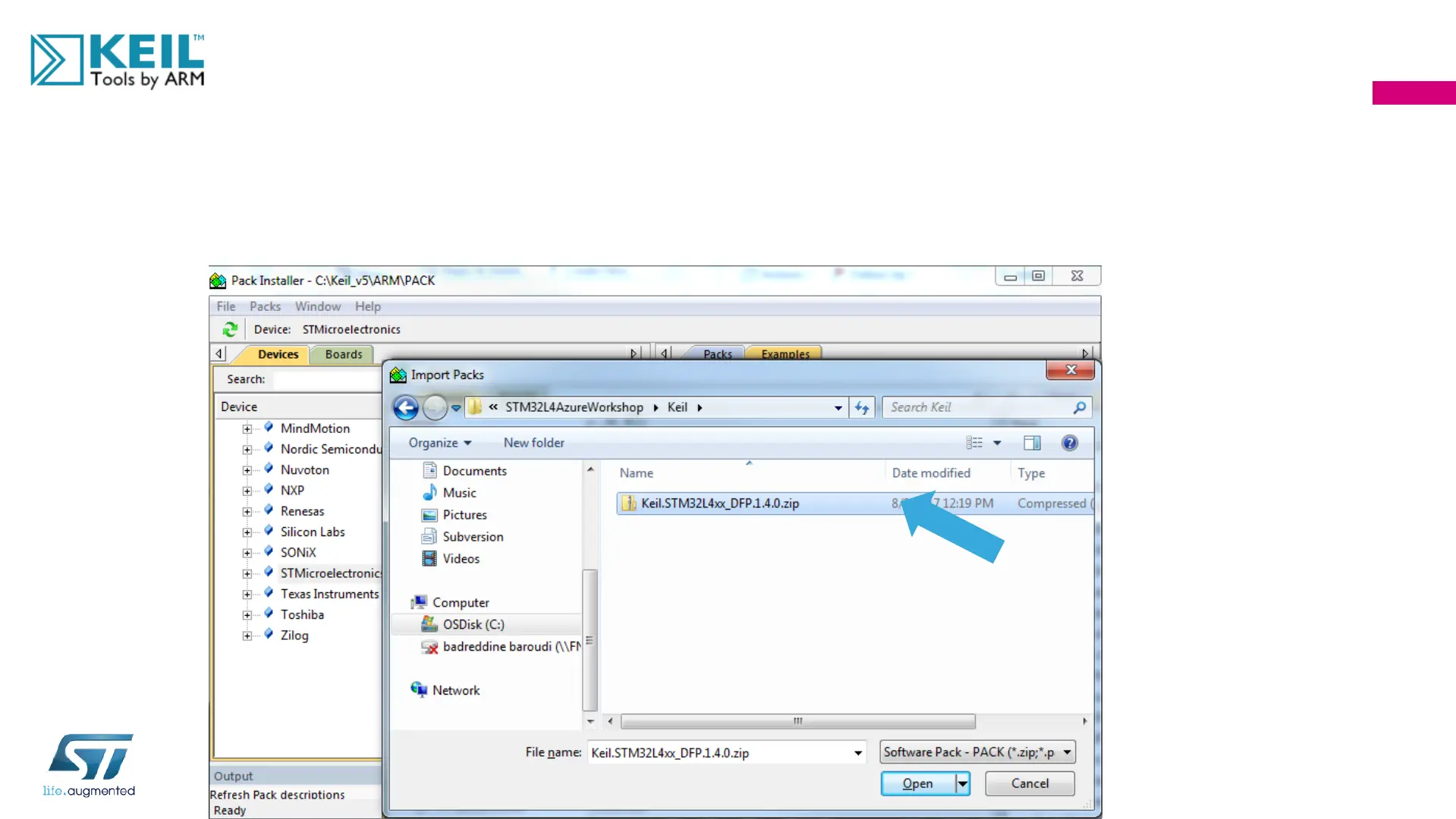 And then choose Keil.STM32L4xx_DFP.1.4.0.zip
