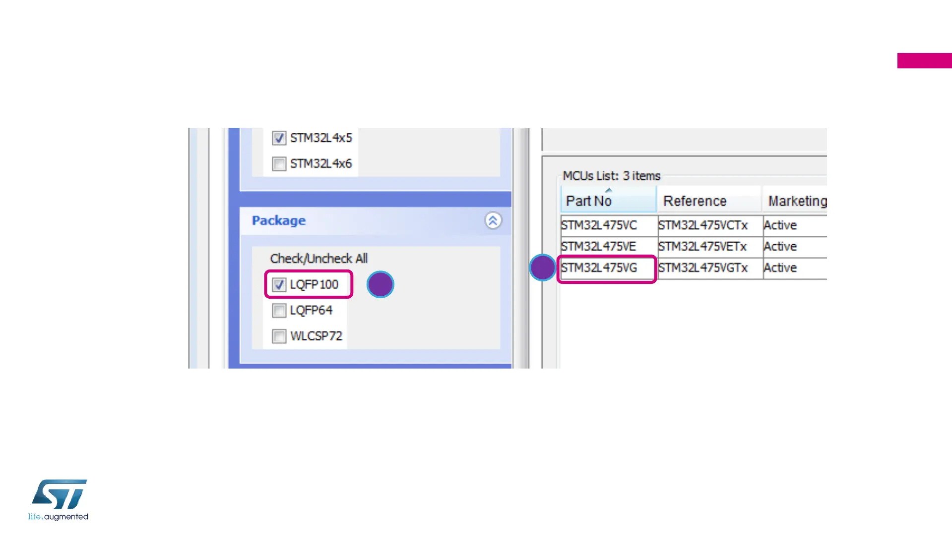 1. Select LQFP100