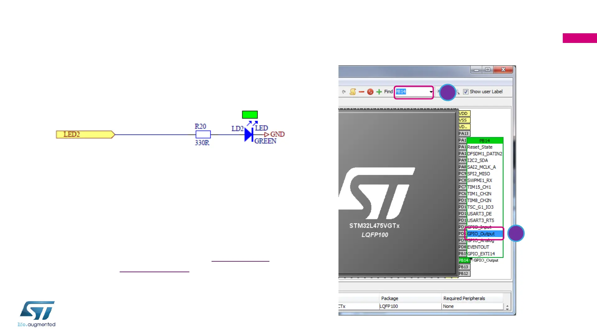 2. Select PB14 and set it to GPIO_Output mode.