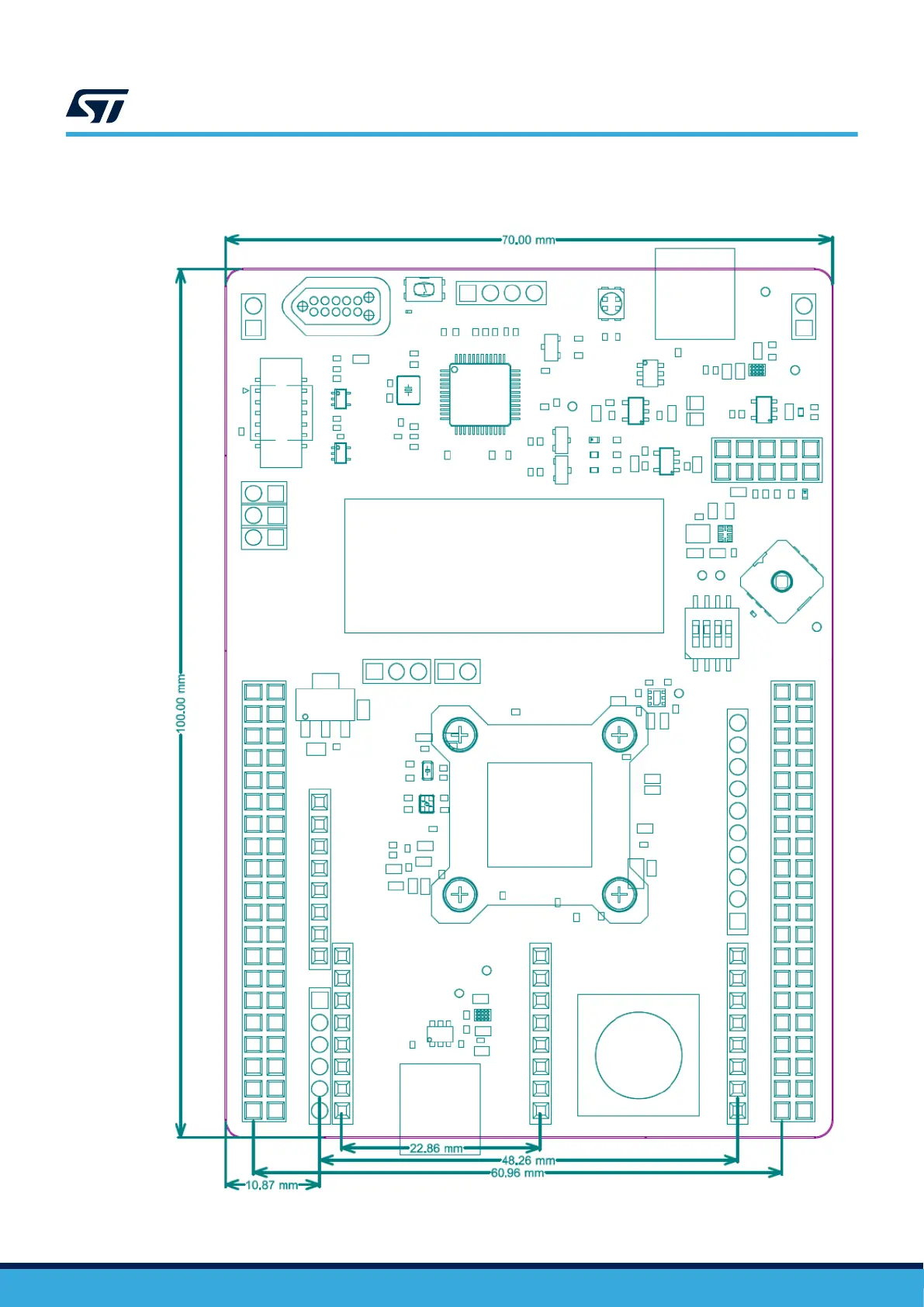 ST STM32U083C-DK - Mechanical Drawing; Figure 5. STM32 U083 C-DK Board Mechanical Drawing (in Millimeters)