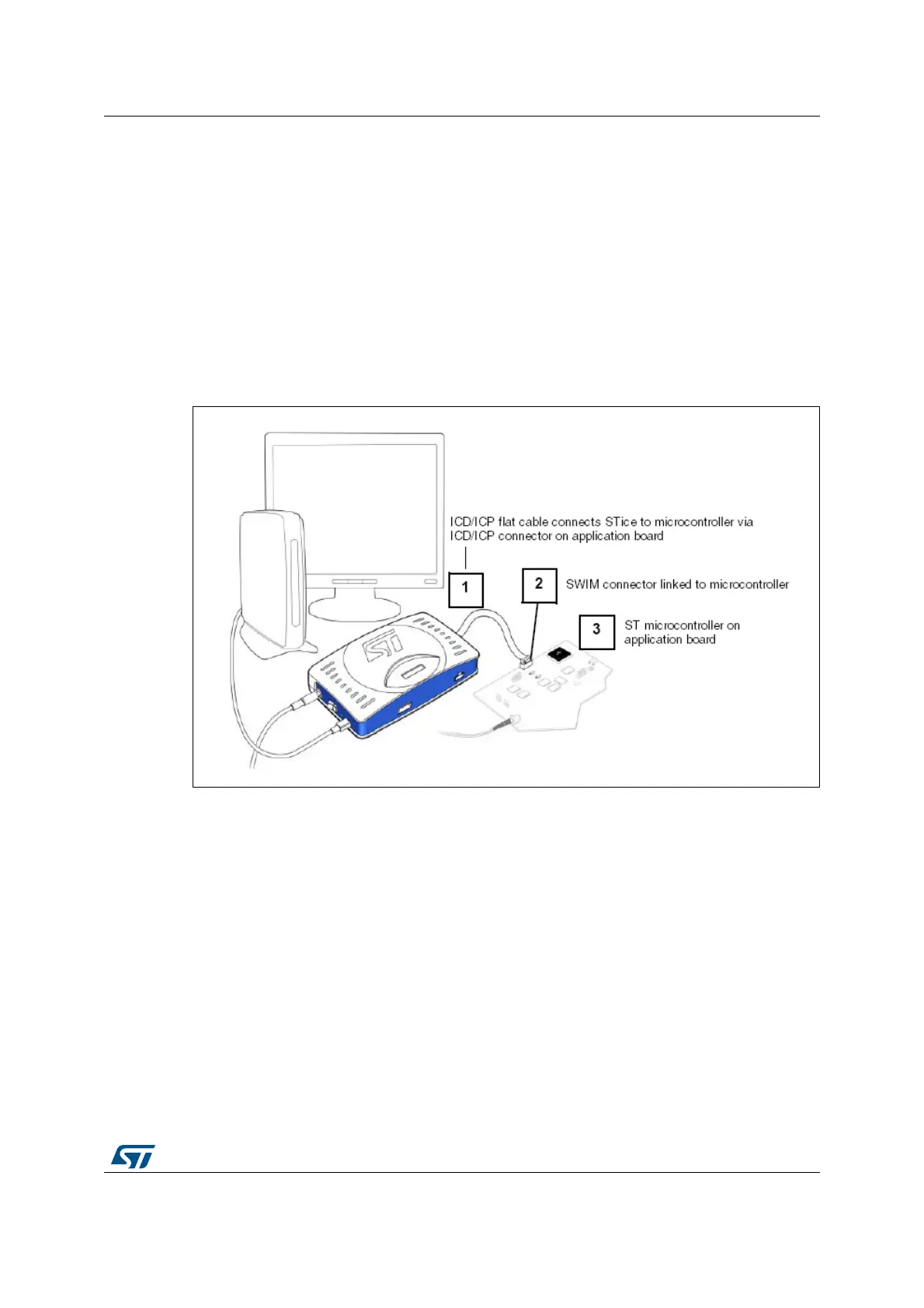 the microcontroller on the application board. STice supports the SWIM protocol, making it