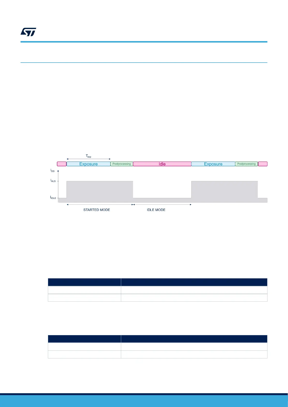 • IDLE: This is the state of the device when not measuring the ambient light events and not detecting flicker.