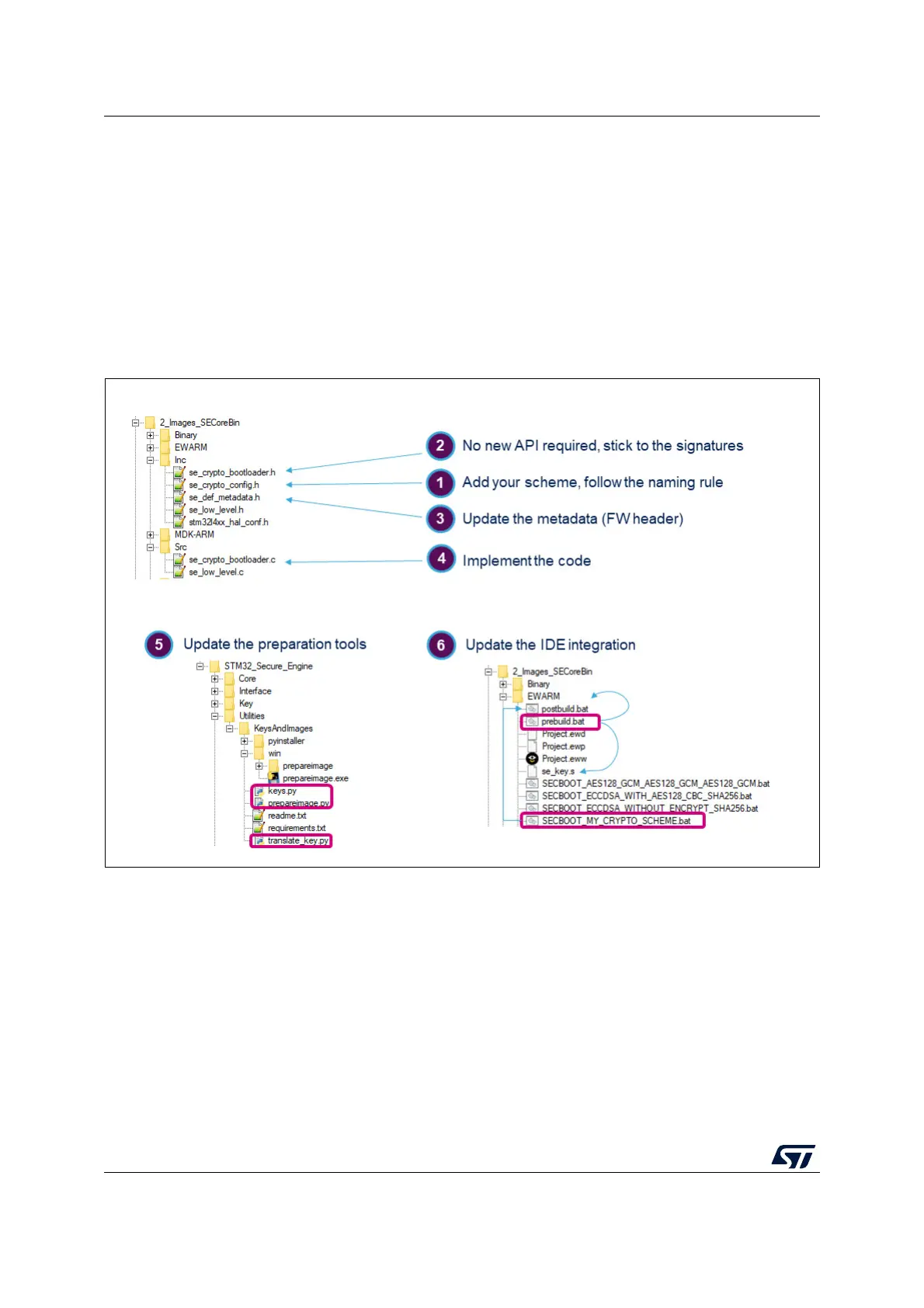 To implement a new cryptographic scheme for SBSFU, follow the steps illustrated in