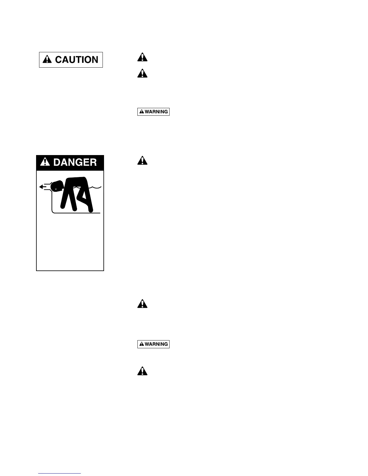 Do not block pump suction! To do so with body may cause severe or