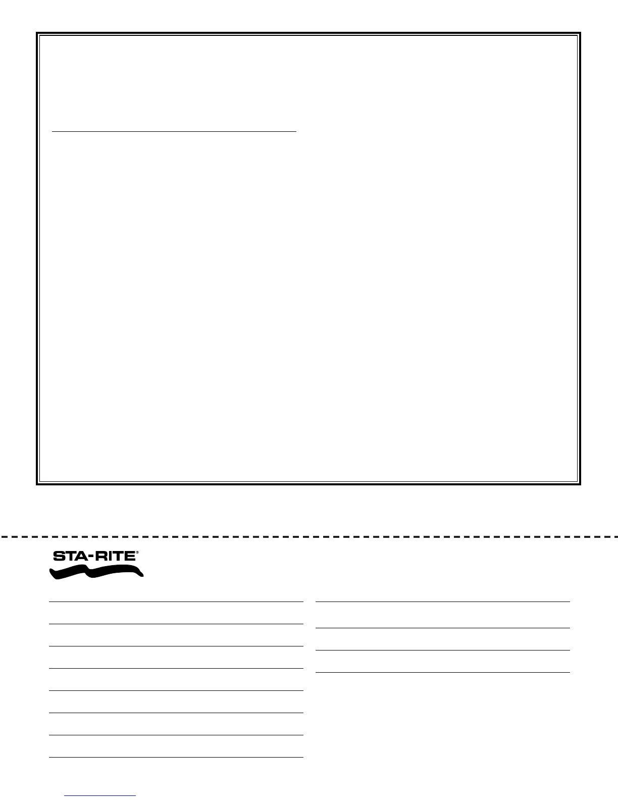 ▼ Sta-Rite, Attn: Warranty Dept., 293 Wright St., Delavan, WI 53115