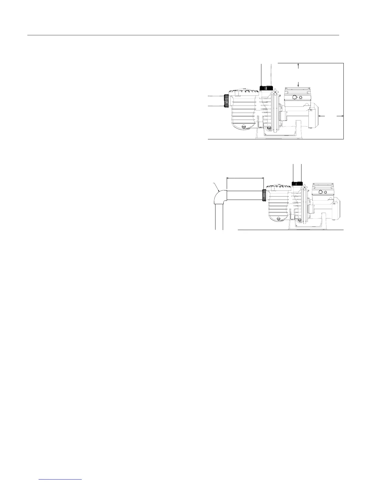 Note: DO NOT install 90° elbows directly into the pump