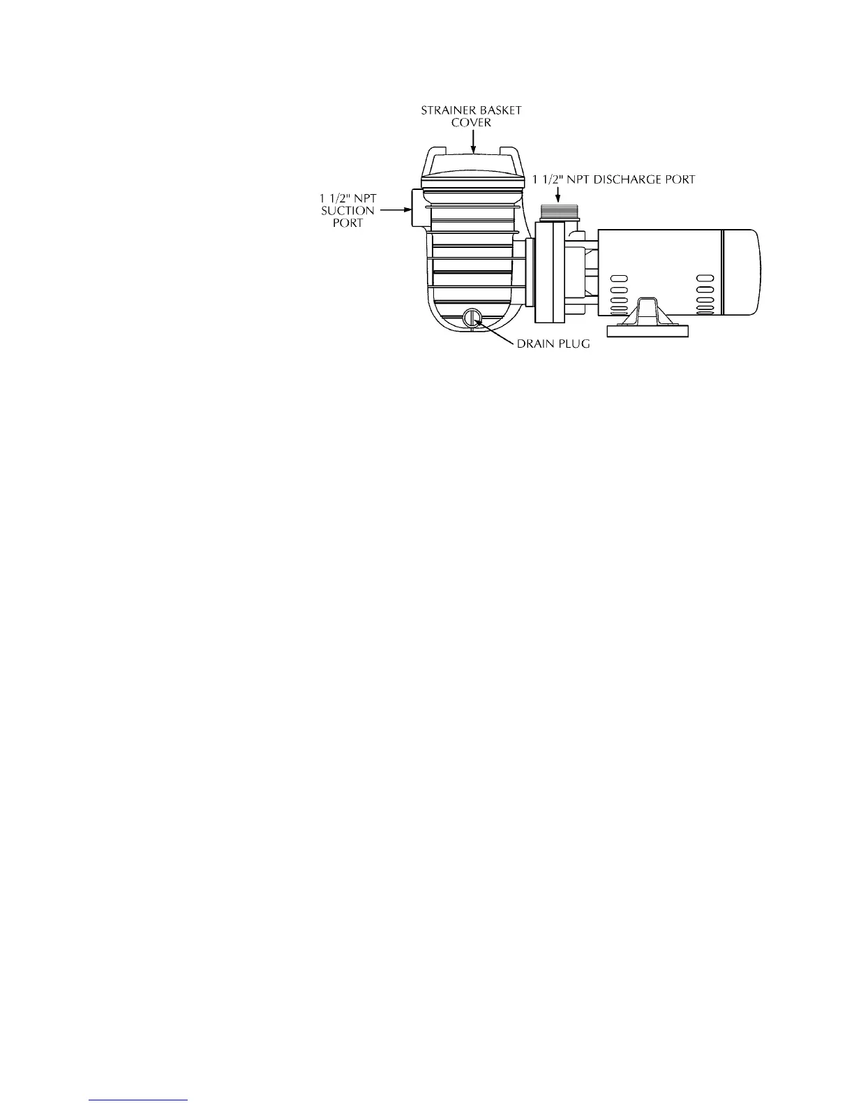 NOTICE: Pump suction and discharge connections have molded in thread