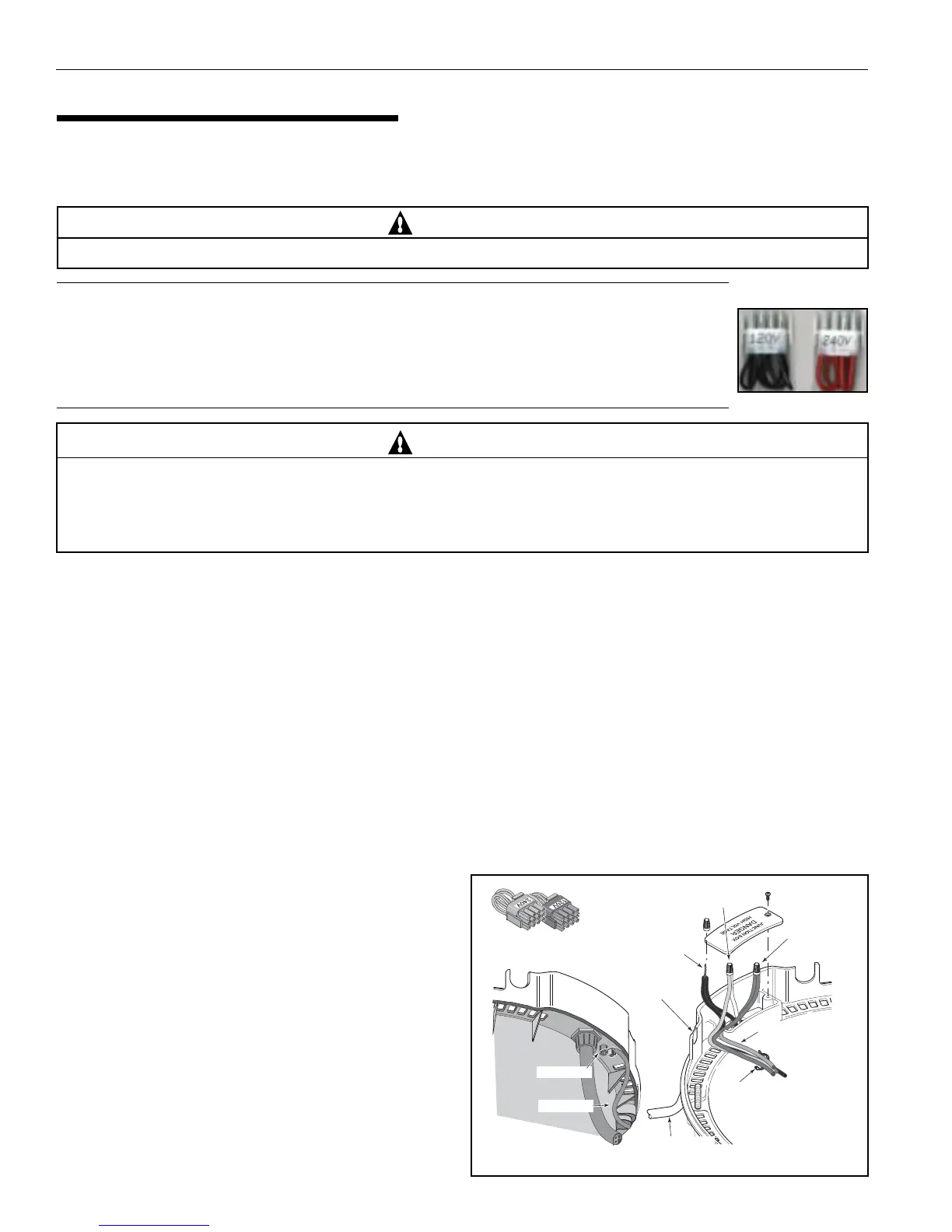 • This heater is configured for a 240V application. If it is to be installed in a 120V application, remove the jacket halves,