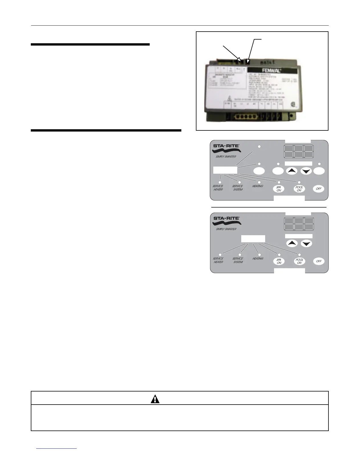 remains on after the filter/skimmers have been serviced, the system should be checked by a qualified service technician.