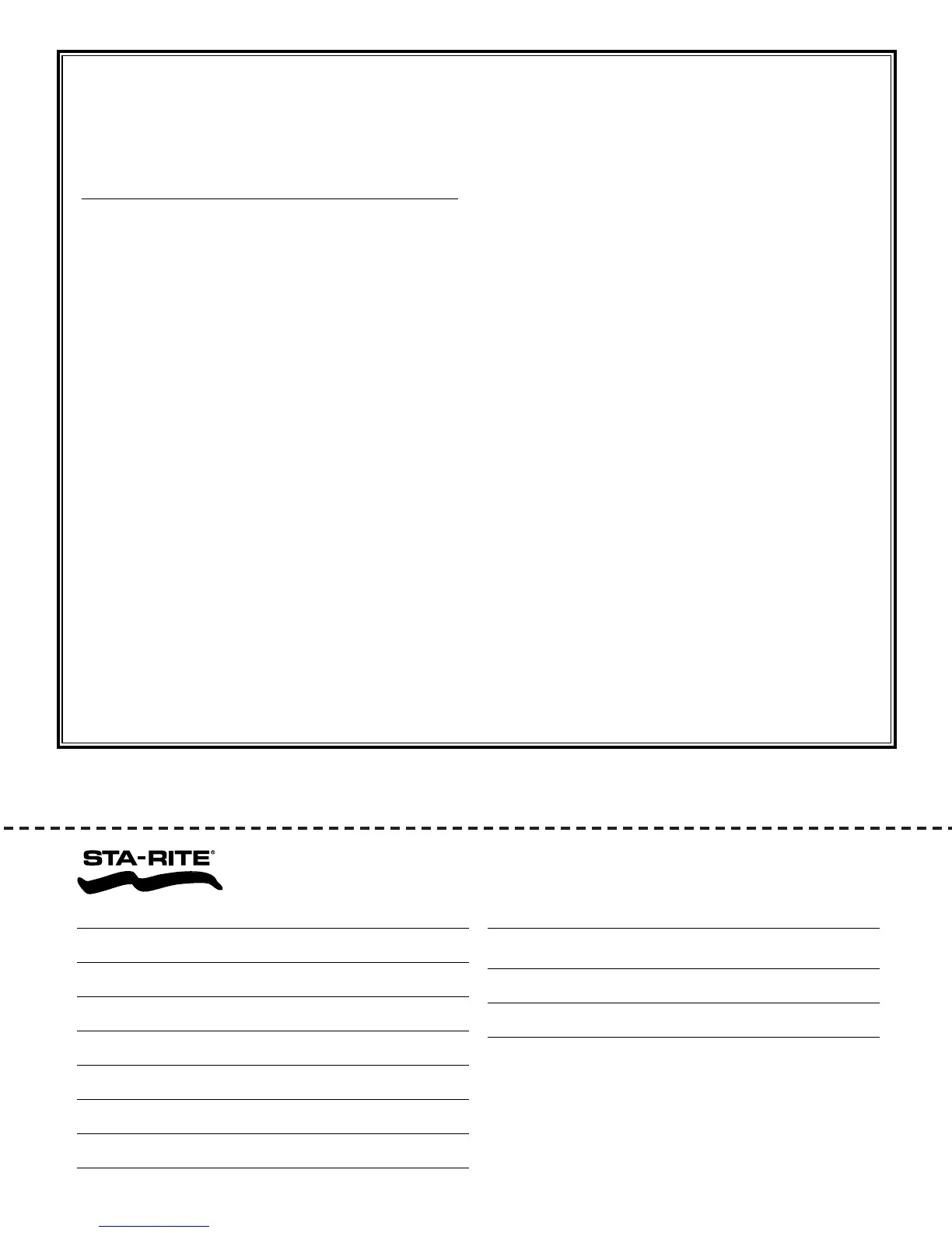 ▼ Sta-Rite, Attn: Warranty Dept., 293 Wright St., Delavan, WI 53115