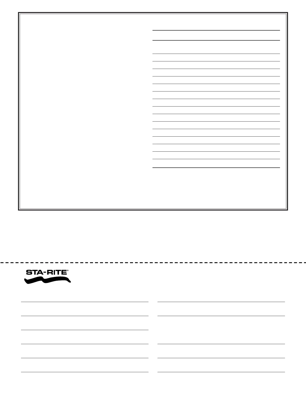 • Complete bottom portion completely and mail within 10 days of installation to Sta-Rite, Attn.: Pool Warranty Dept., 293 Wright St., Delavan , WI 53115