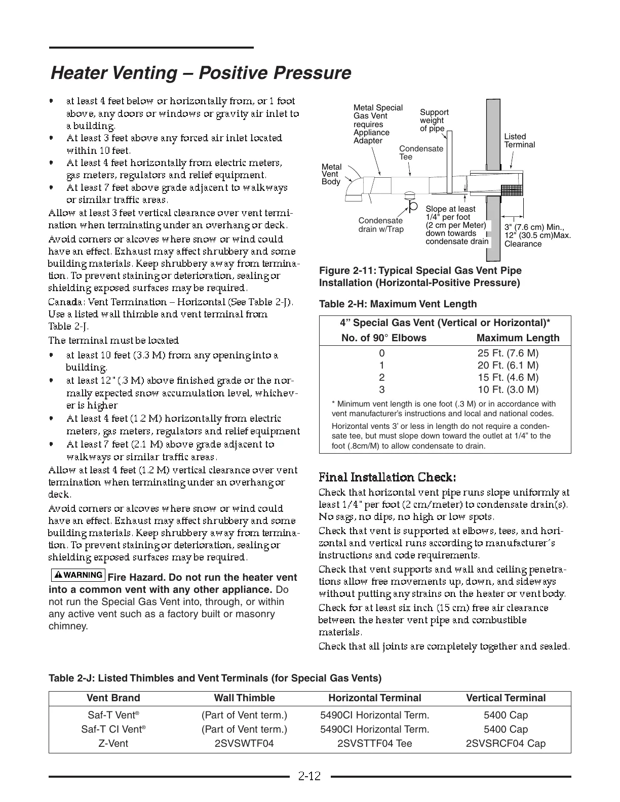 Table 2-J: Listed Thimbles and Vent Terminals (for Special Gas Vents)