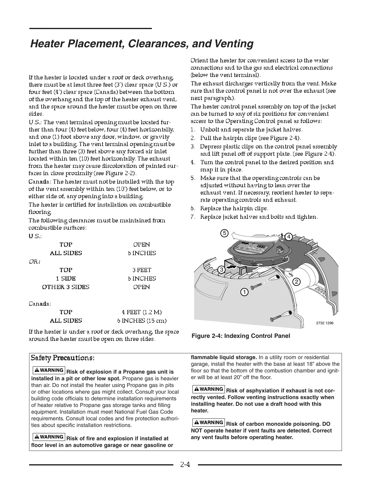 Heater Placement, Clearances, and Venting