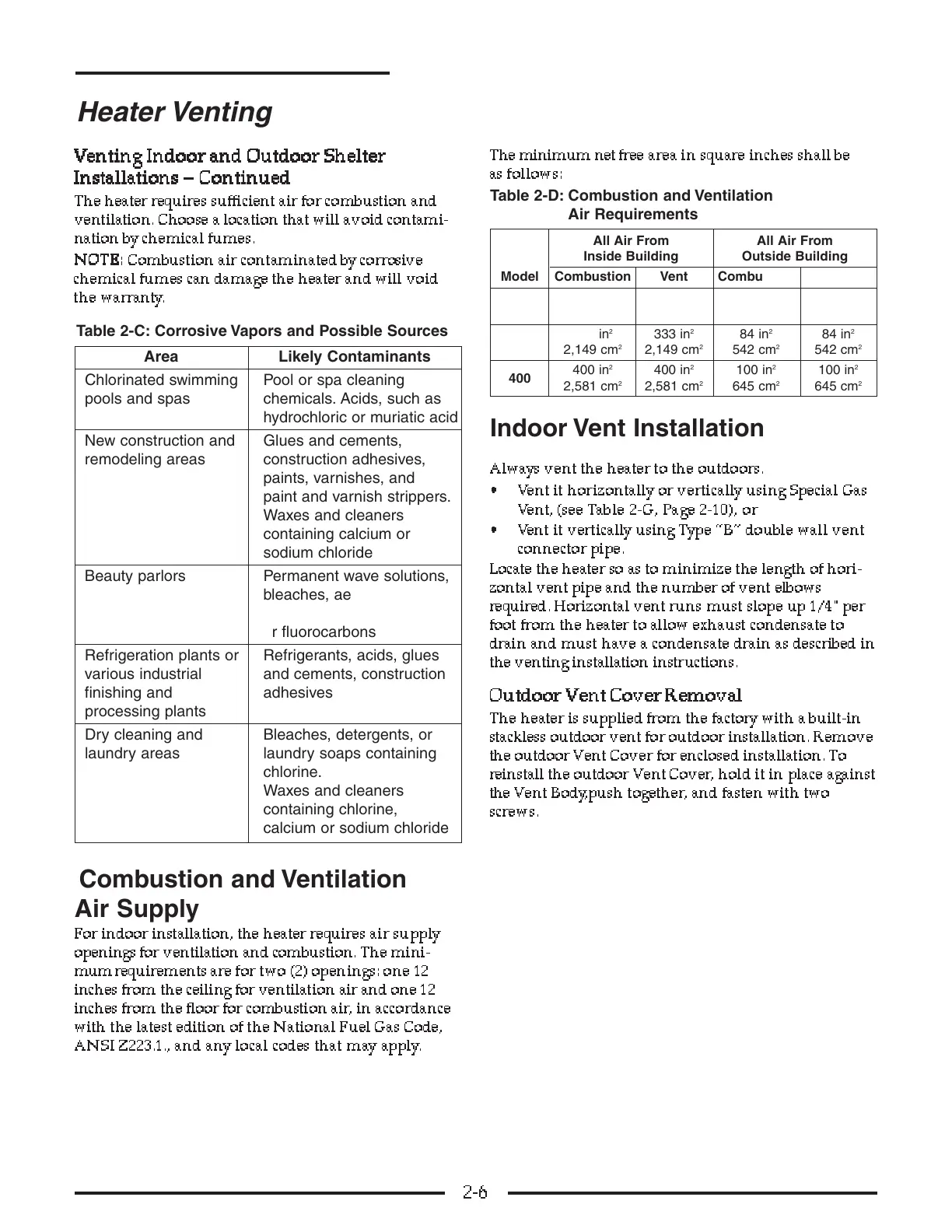 Table 2-D: Combustion and Ventilation