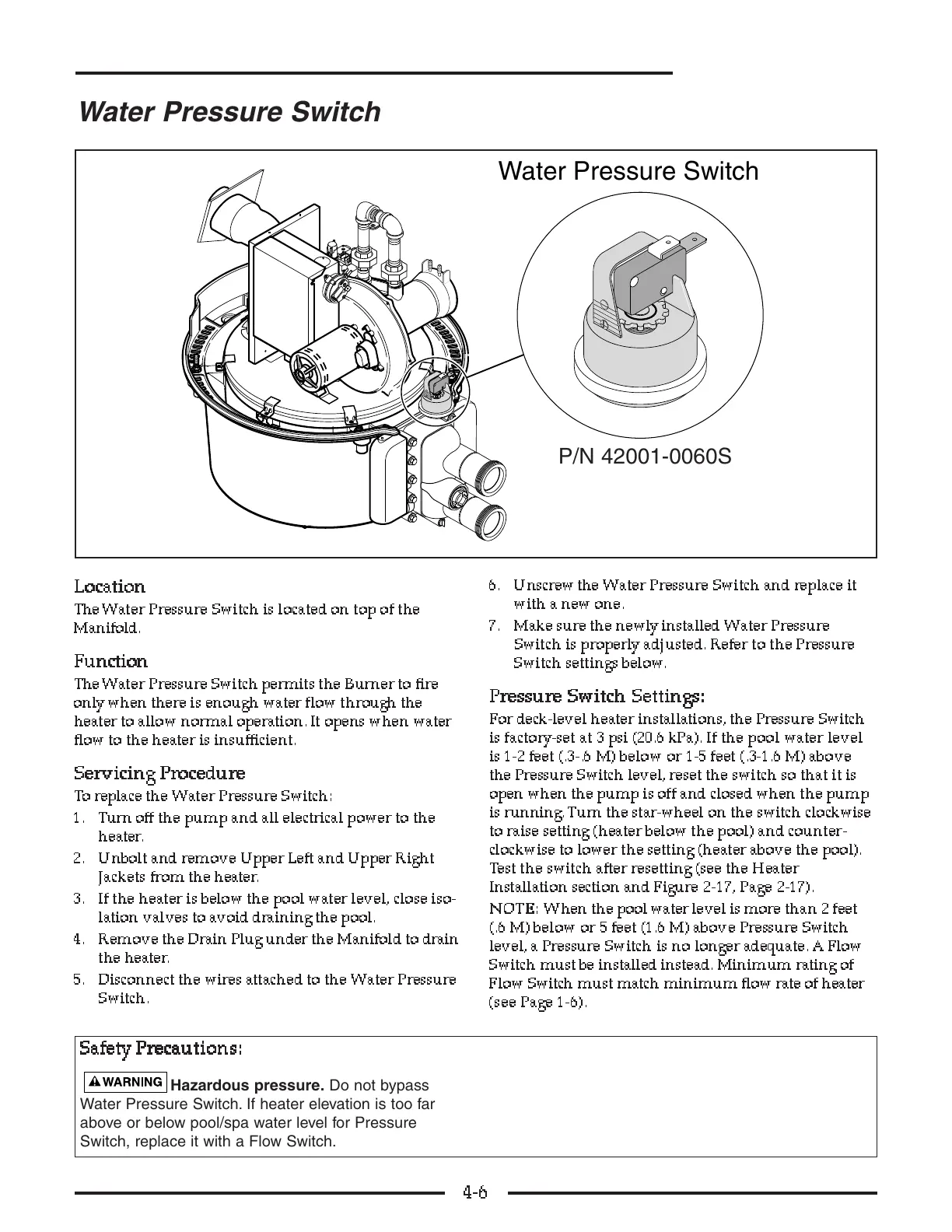 (.6 M) below or 5 feet (1.6 M) above Pressure Switch