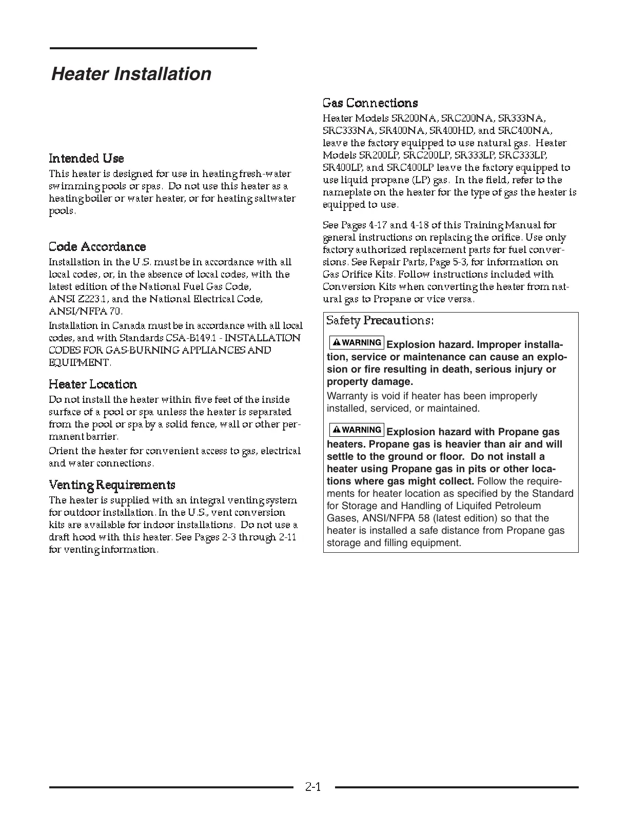 SECTION TWO – Heater Installation