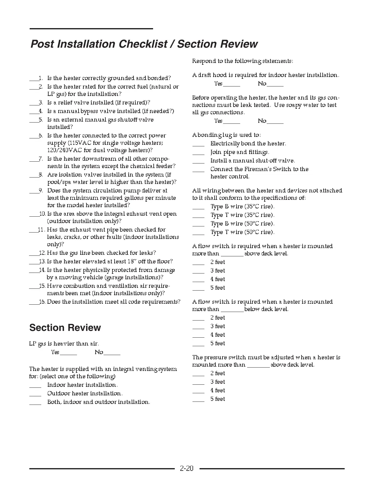 SECTION TWO – Heater Installation