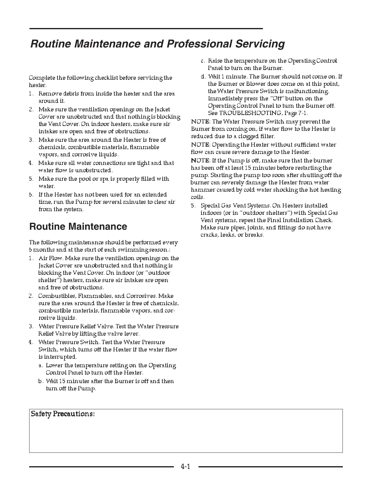 STA-RITE SRC400NA - SECTION FOUR - Routine Maintenance and Professional Servicing; Routine Maintenance and Professional Servicing