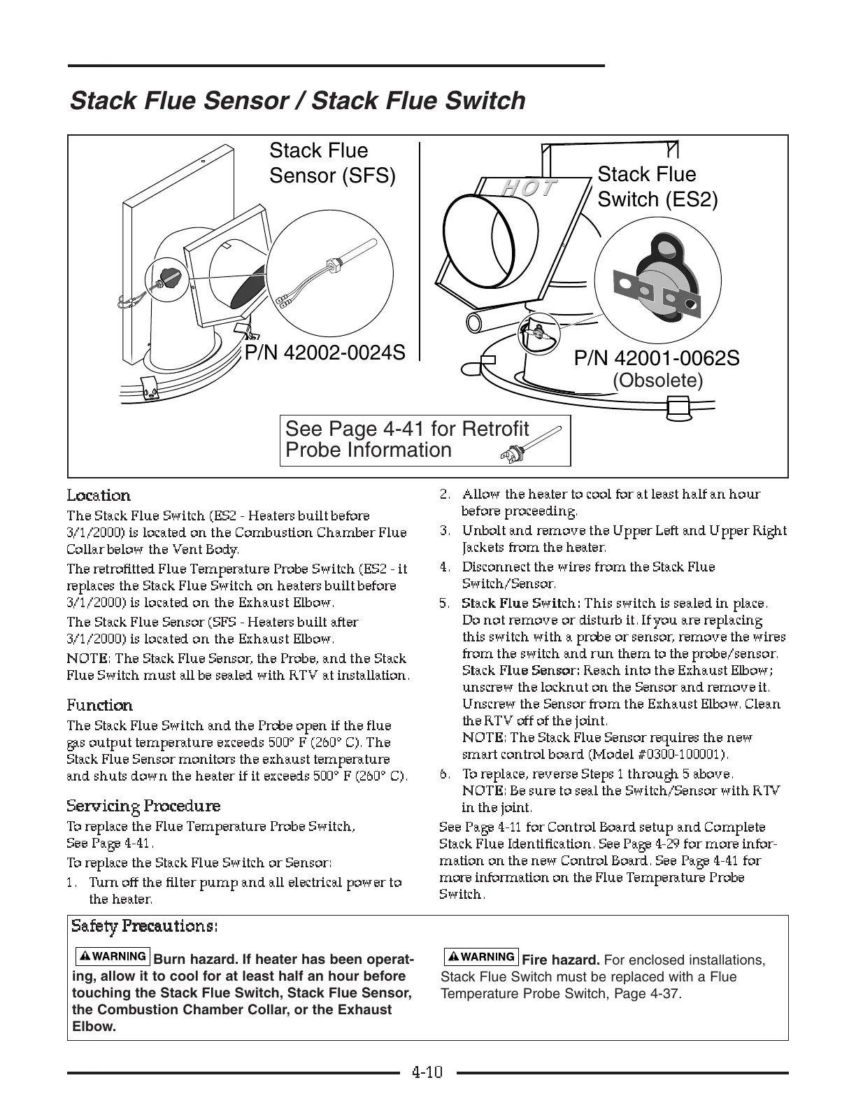 touching the Stack Flue Switch, Stack Flue Sensor,