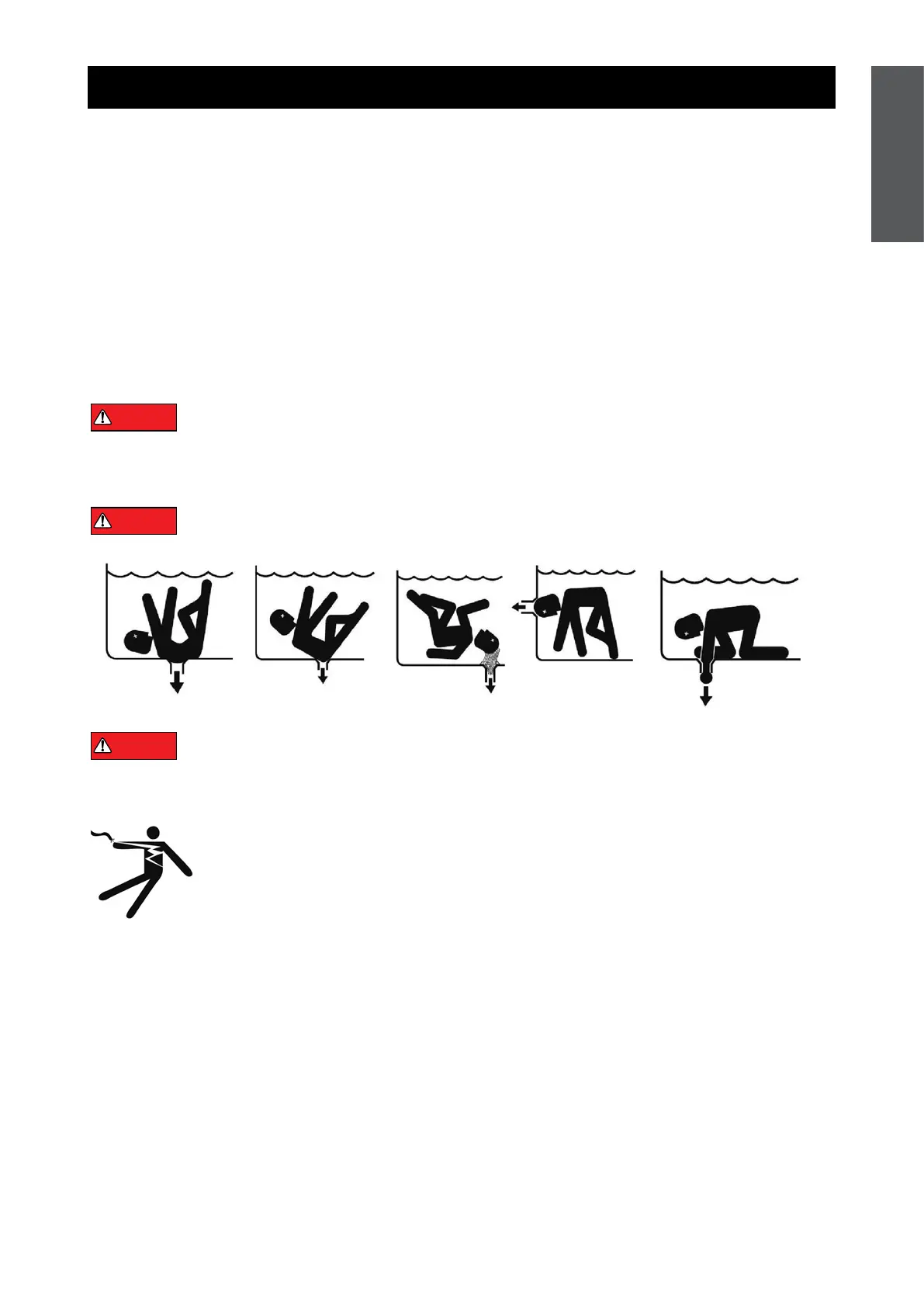 SUCTION ENTRAPMENT HAZARD: Stay off the main drain and away from all suction outlets! This