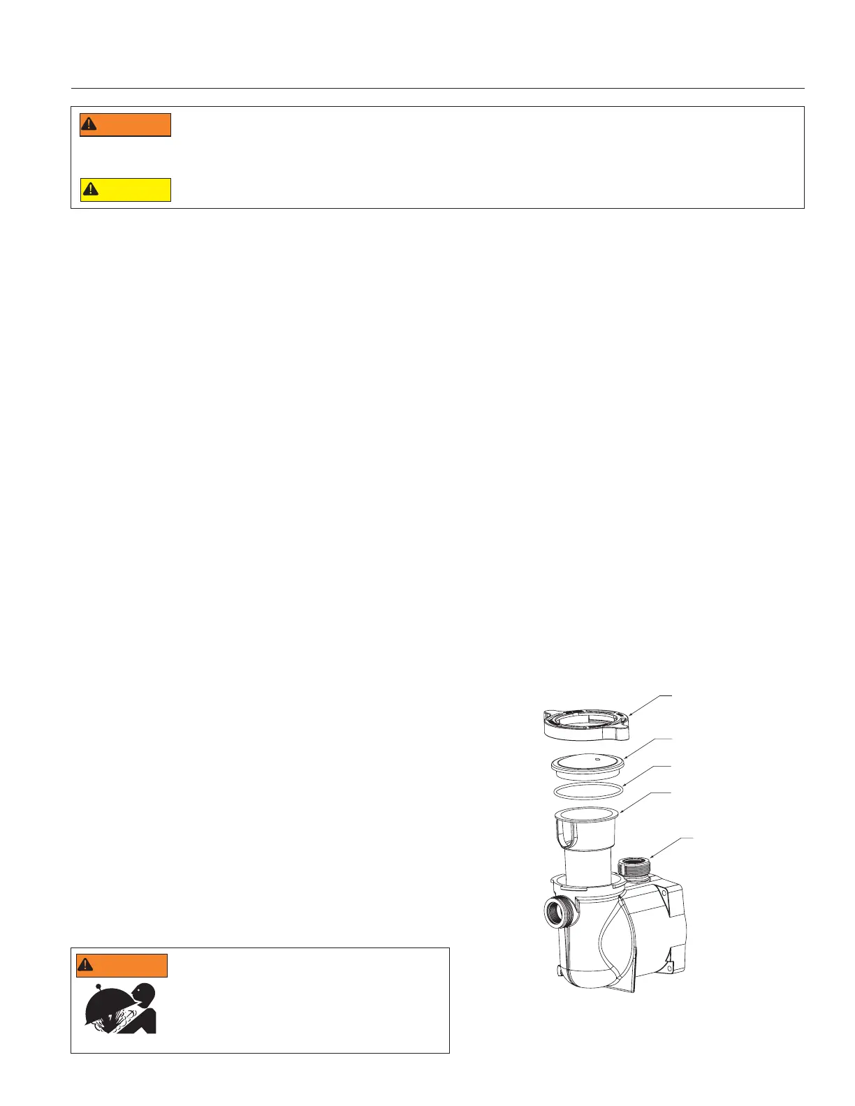eau dans le panier-filtre. Les pompes qui ont fonctionné dans de telles circonstances peuvent présenter une accumulation de pression de