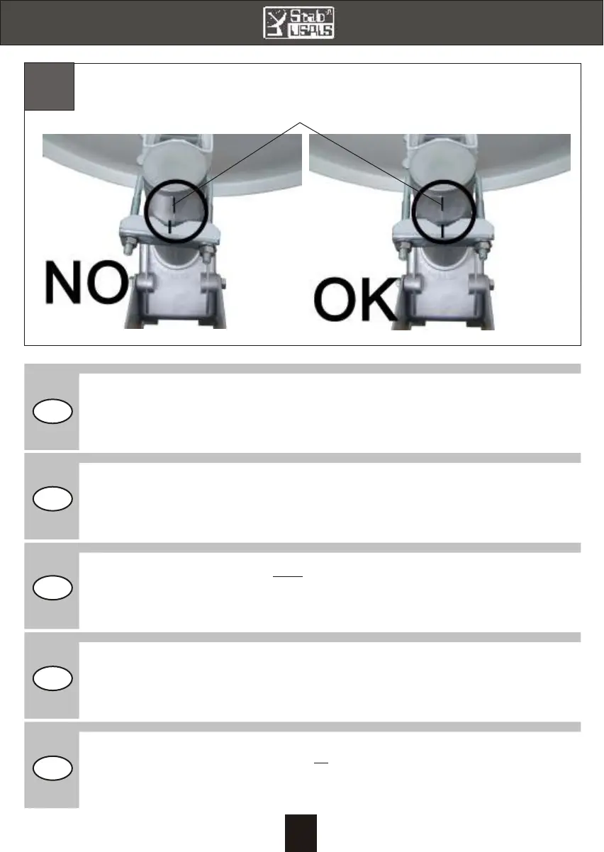 Align perfectly the rotor’s tube indicator to the dish axis and tighten the screws.