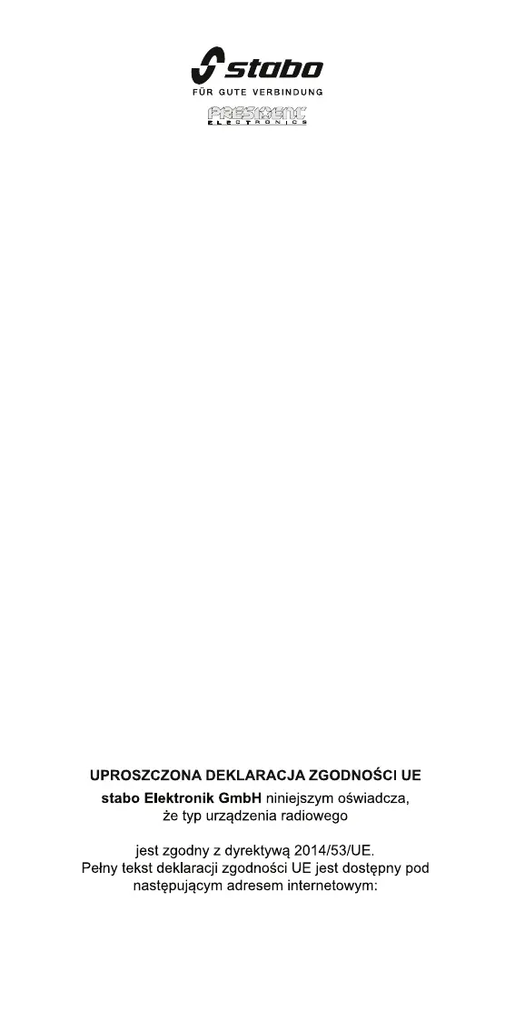 Hiermit erklärt stabo Elektronik GmbH, dass die Funkanlage Typ