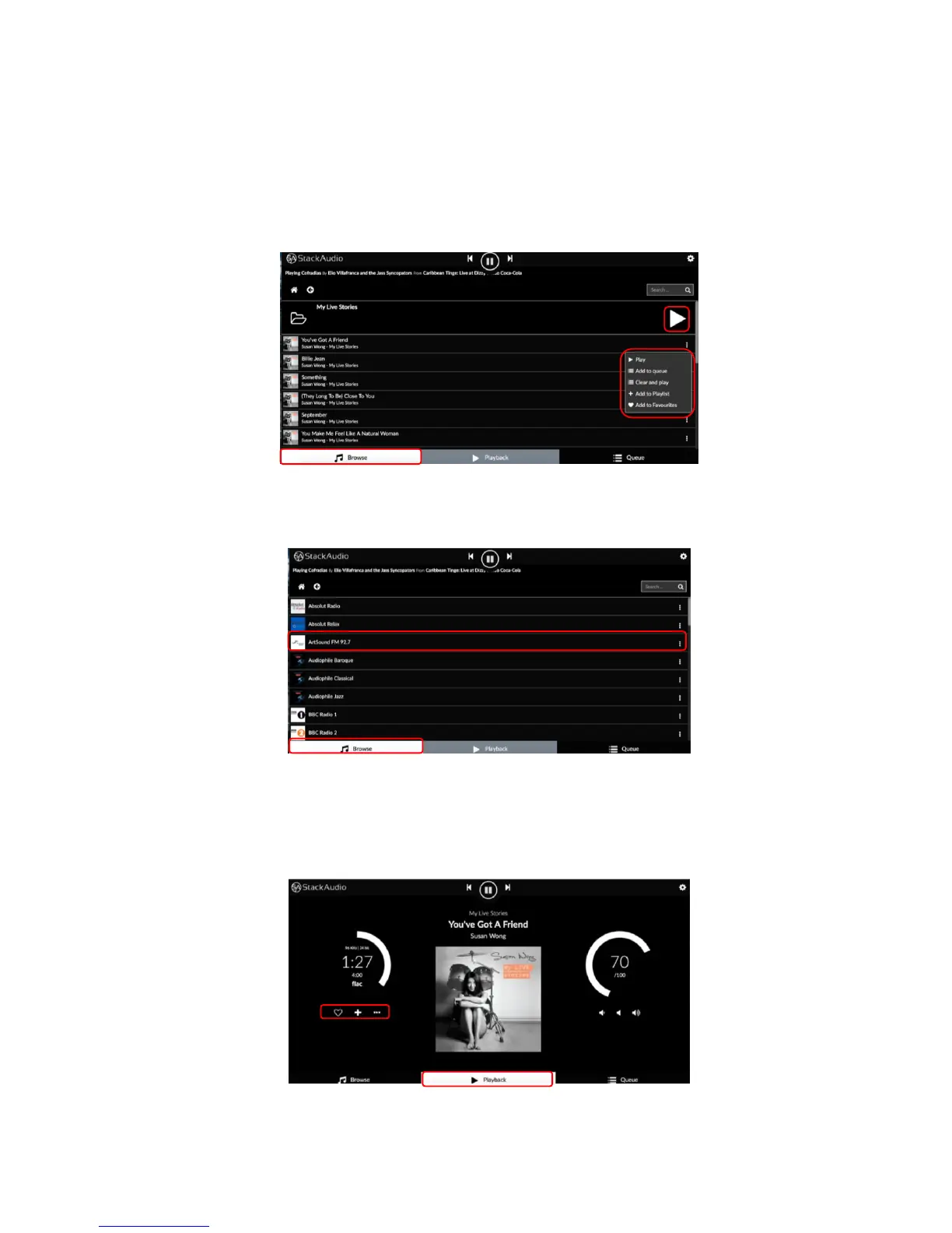• Clicking on the arrow will add the whole album to the queue and start it playing.
