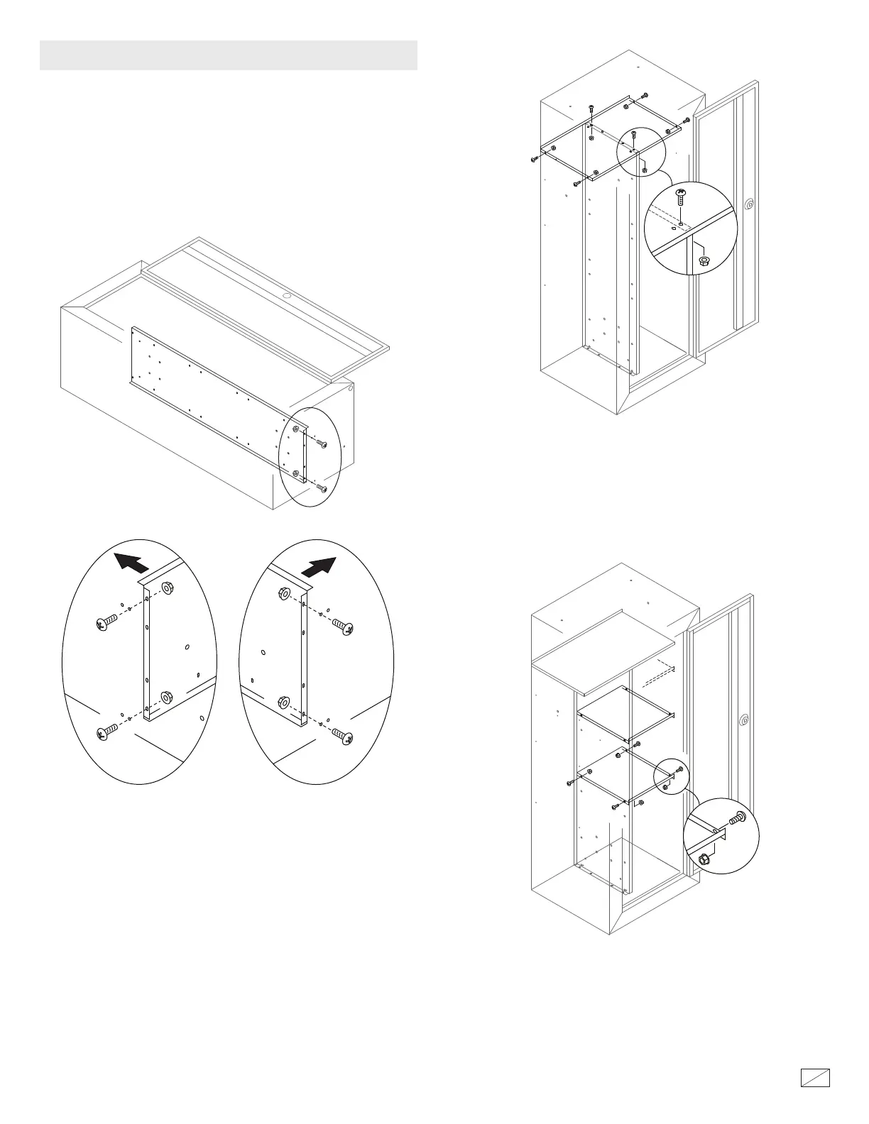 estantes en el gabinete. Para facilitar el montaje, no apriete las tuercas y los