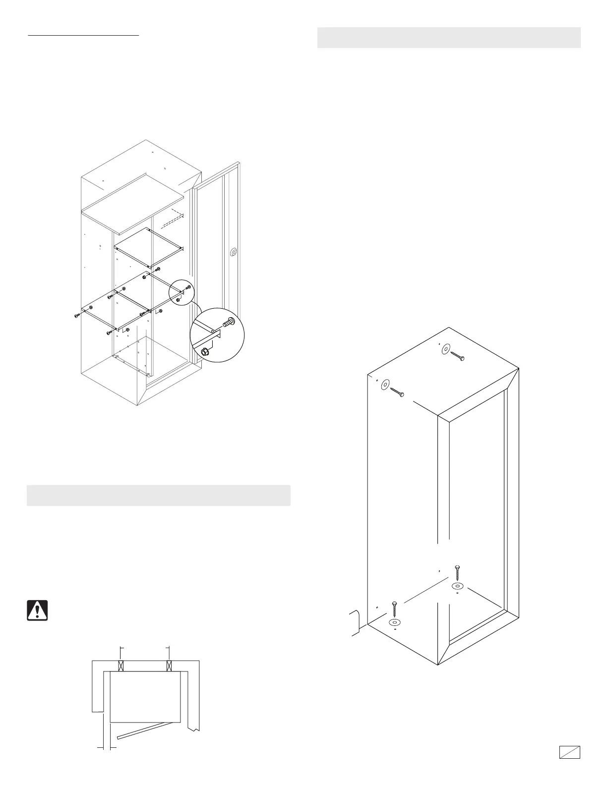 (2) mounting holes in the back of the cabinet. Secure the cabinet to