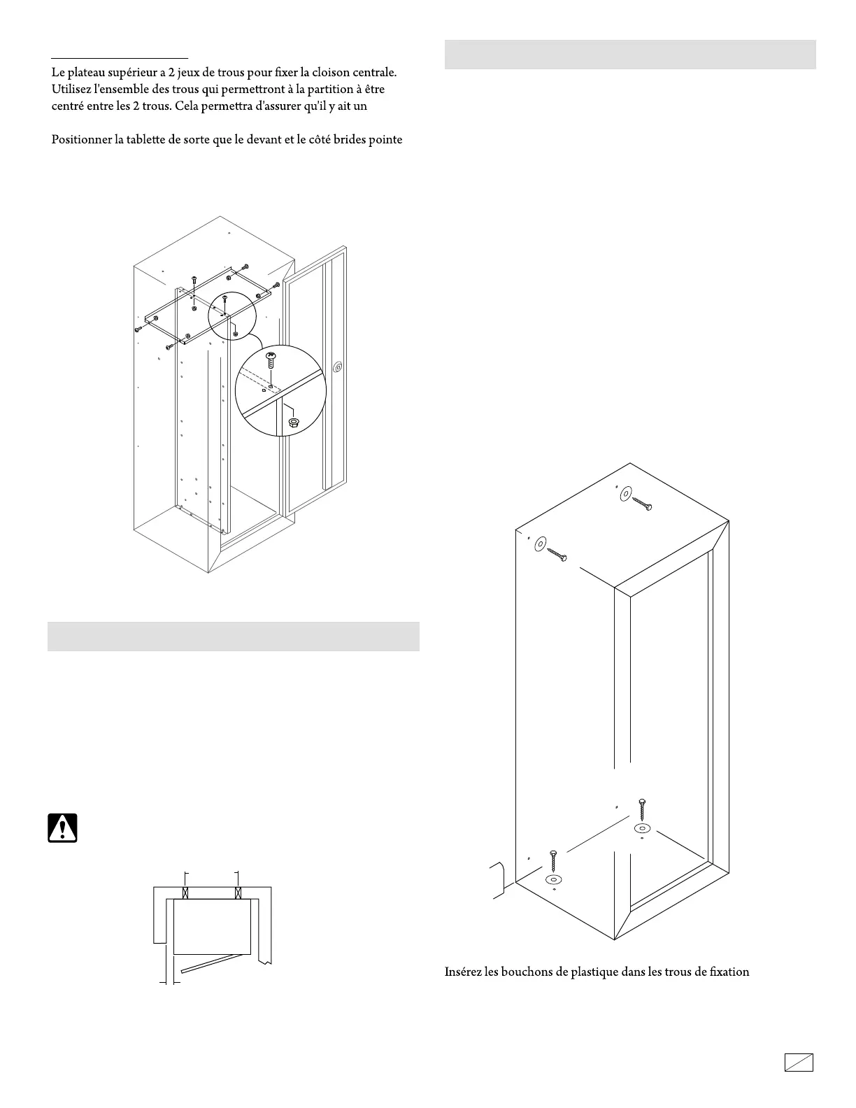 vers le bas. Assemblez l'étagère du haut de la cloison centrale et les