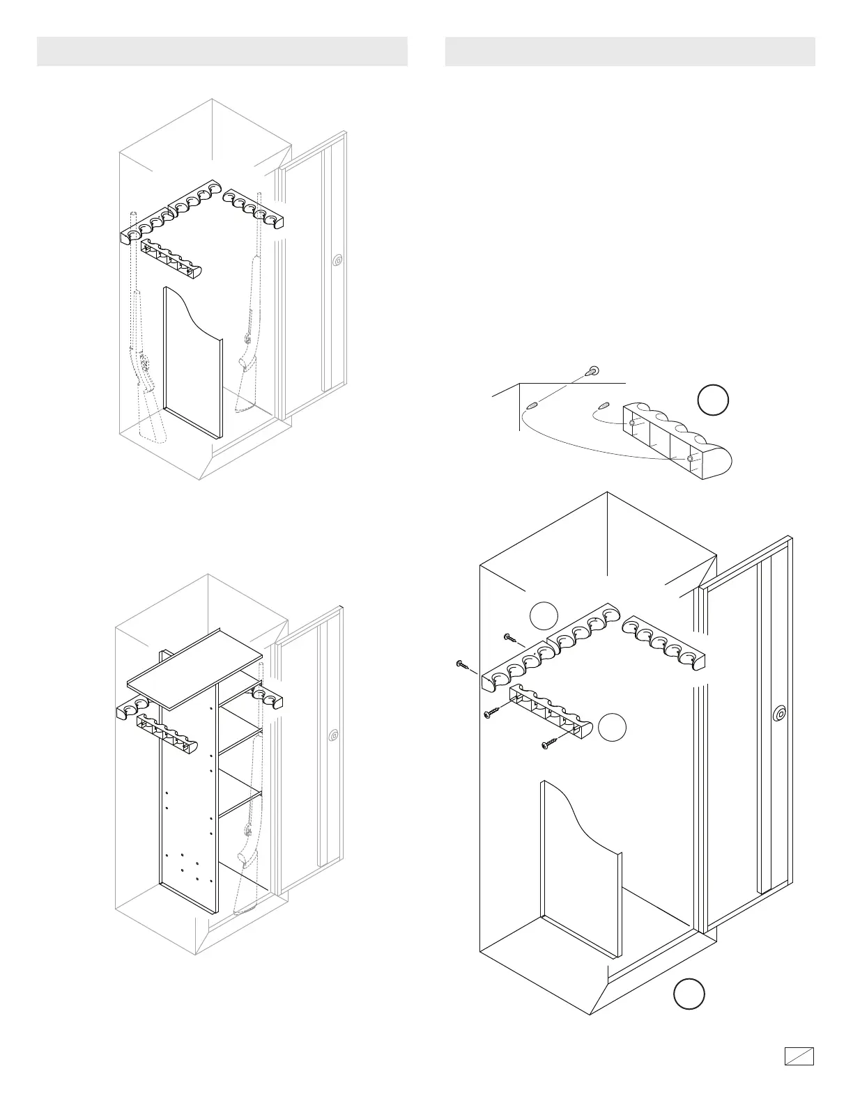 Install the 4-position barrel rests (A) to the back of the cabinet