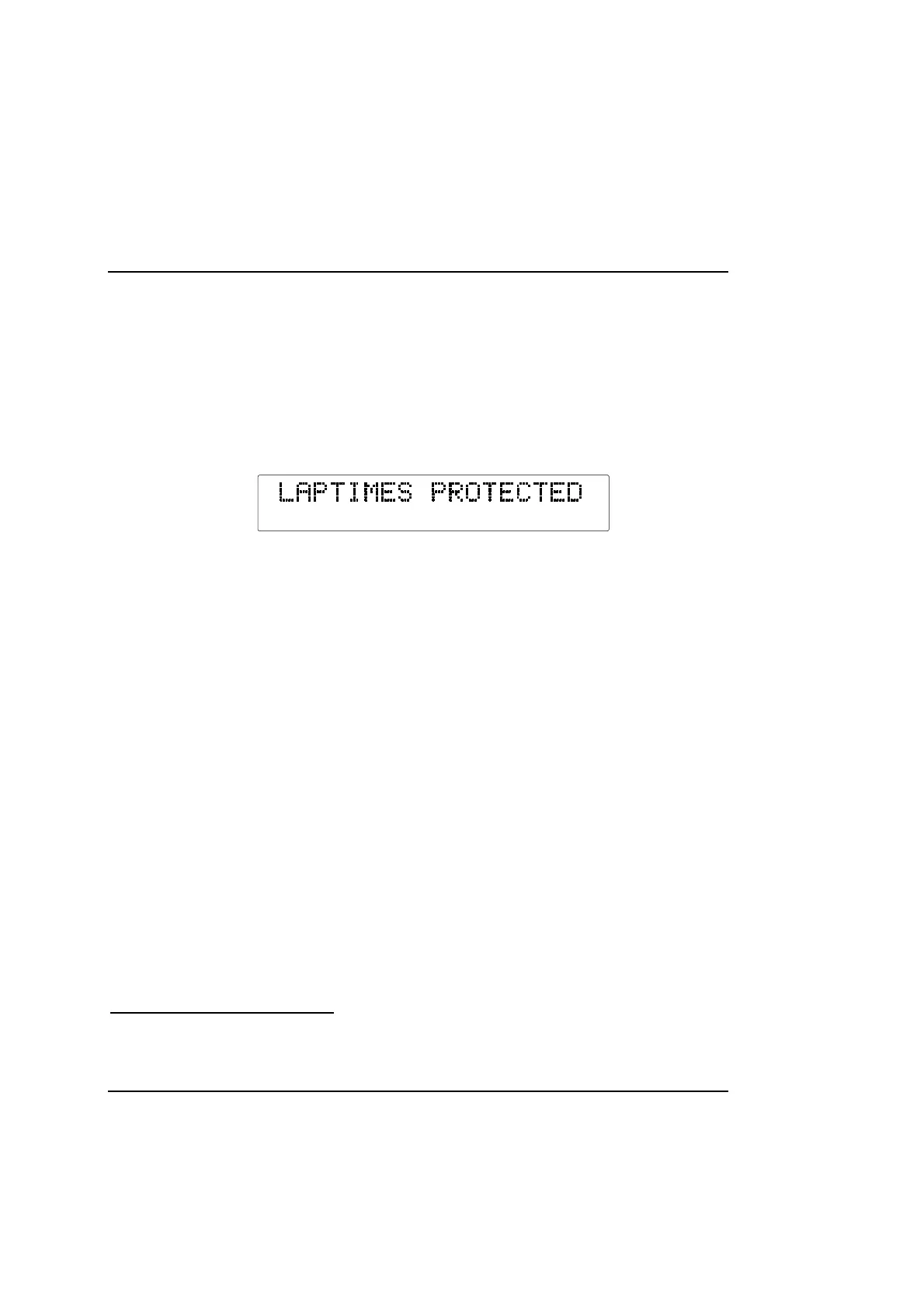 This ensures security of your laptime information. Press switch 2 to return the system to the normal display format.