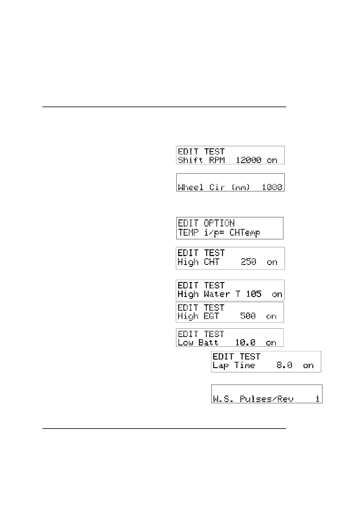itself increases while the switch is being held down. Examples of the displays for each of the configuration items are shown below.