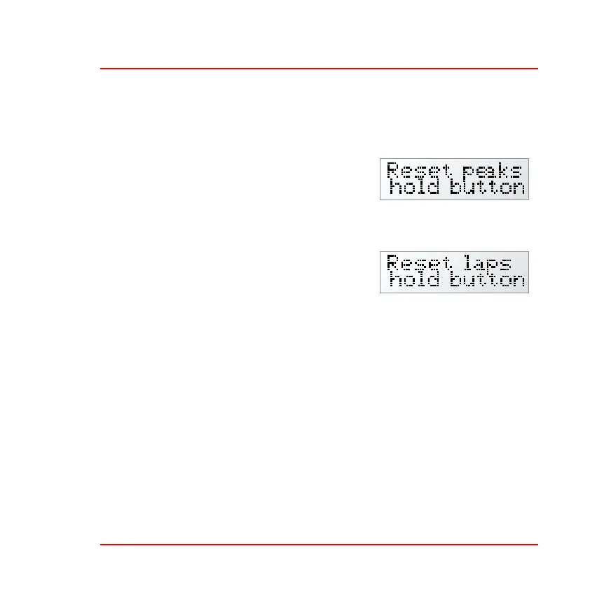 The system confirms the reset of peaks and lap timings after this action.