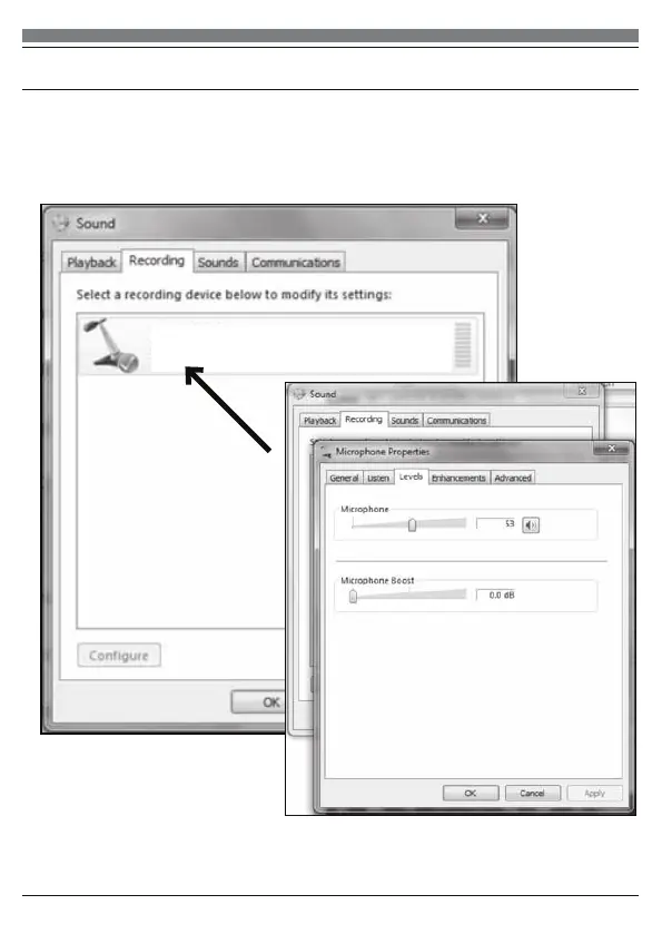 window. Select the levels tab to adjust microphone level (loudness). You may