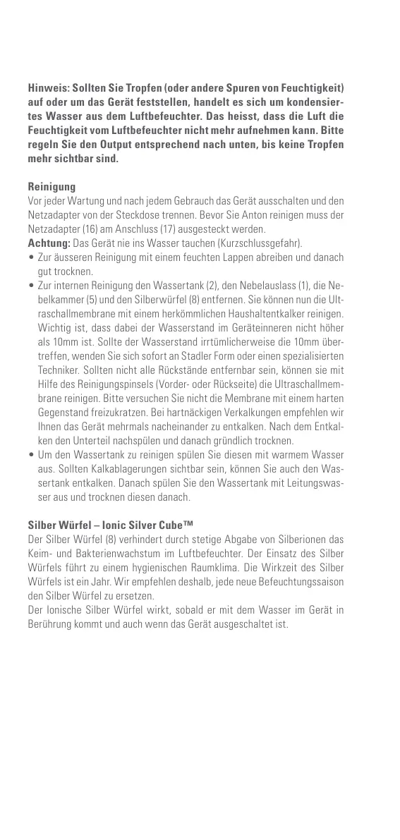 Würfels führt zu einem hygienischen Raumklima. Die Wirkzeit des Silber
