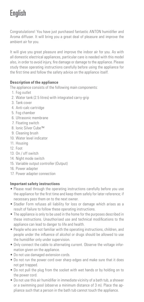 Congratulations! You have just purchased fantastic ANTON humidier and