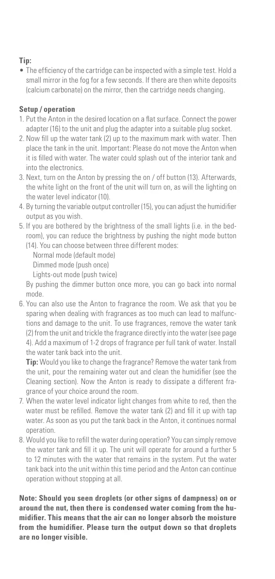 from the humidier. Please turn the output down so that droplets