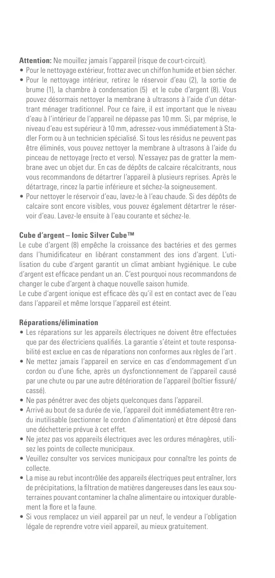 dans l‘humidicateur en libérant constamment des ions d‘argent. L‘uti-