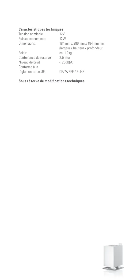 Niveau de bruit < 26dB(A)