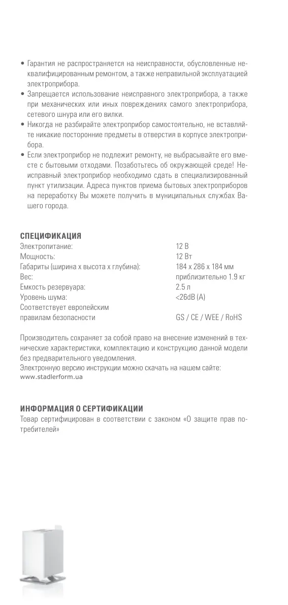 • Гарантия не распространяется на неисправности, обусловленные не-