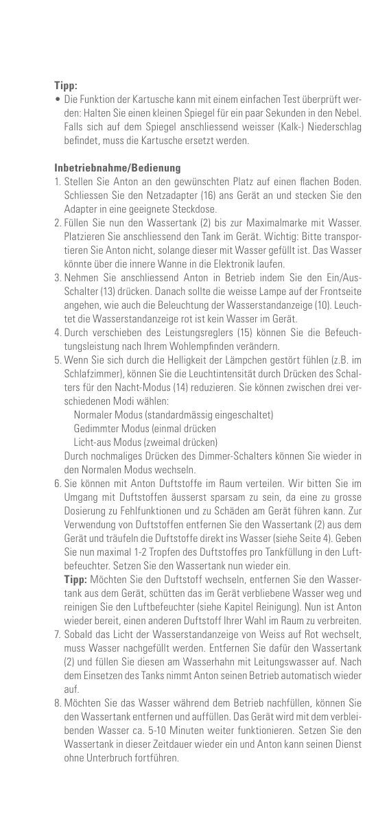 reinigen Sie den Luftbefeuchter (siehe Kapitel Reinigung). Nun ist Anton