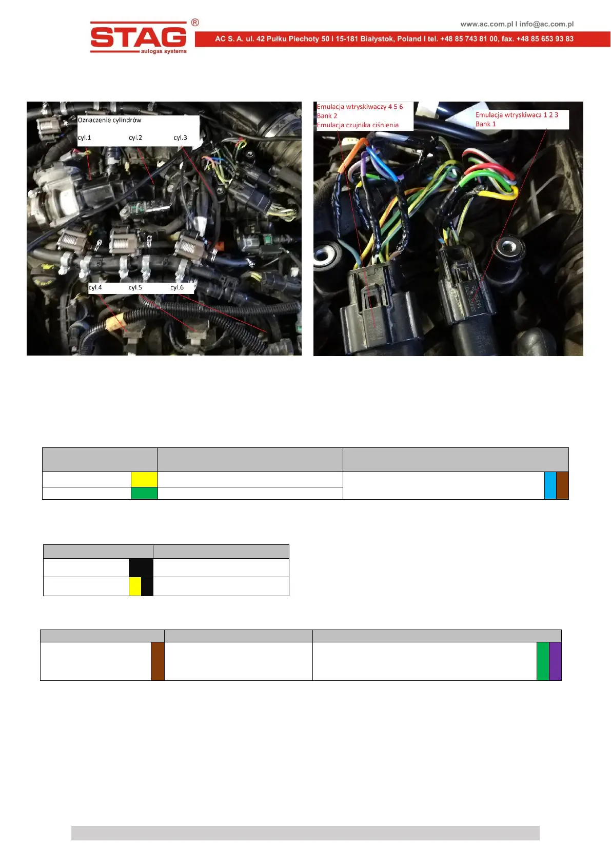 Kolor przewodu STAG Opis podłączenia
