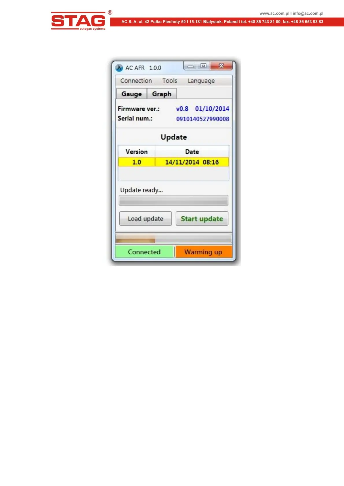 If the upgrading process fails, the "Update" window will open automatically after connection to the