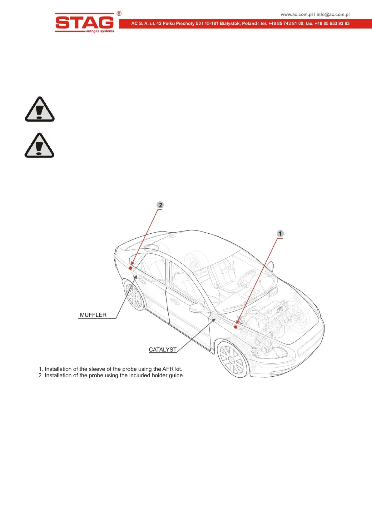 If the vehicle is equipped with a catalyst (catalytic converter), the sleeve should be placed upstream the