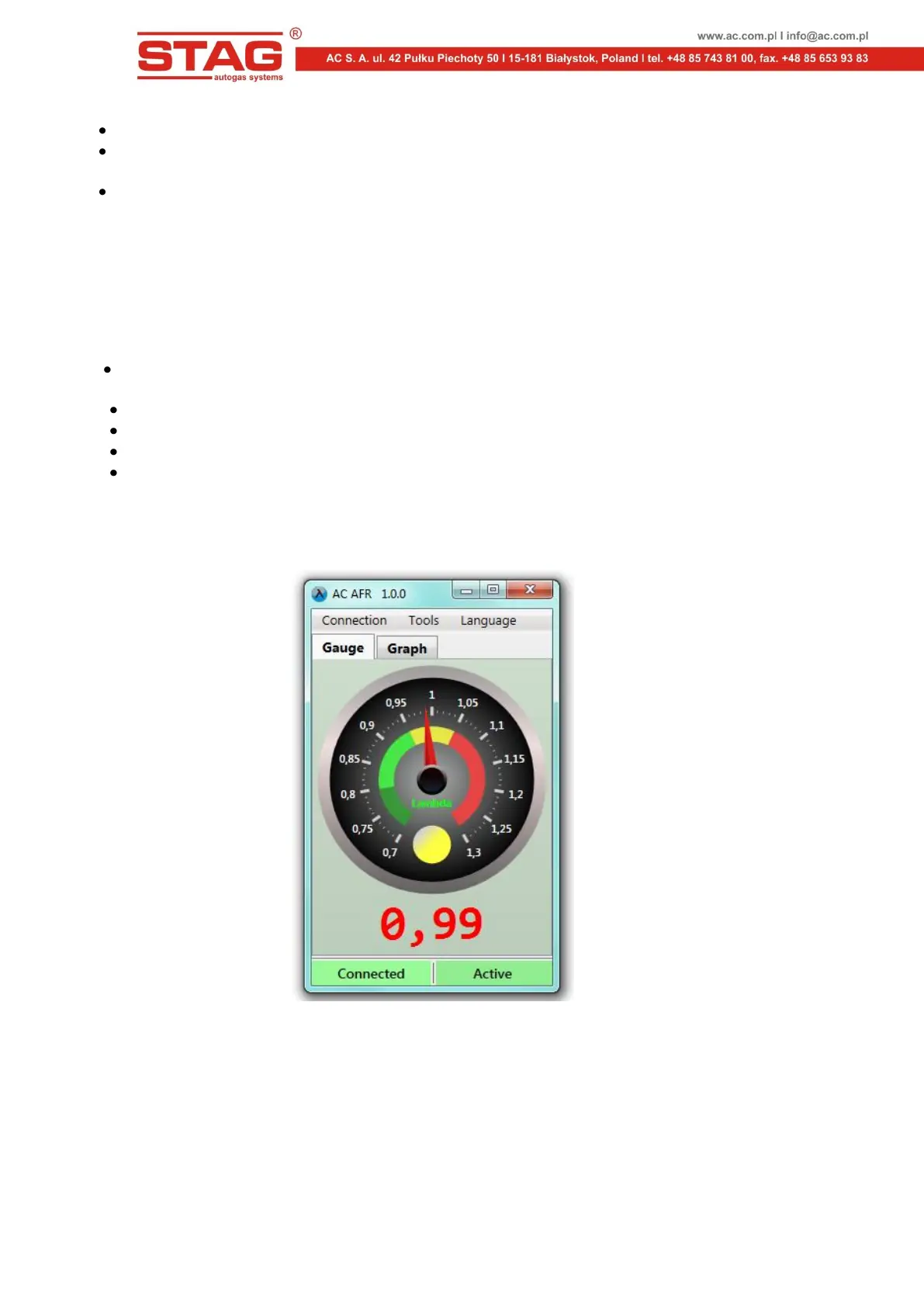 The Gauge tab contains a dial indicator of the measured value (default: AFR - lambda parameter) and