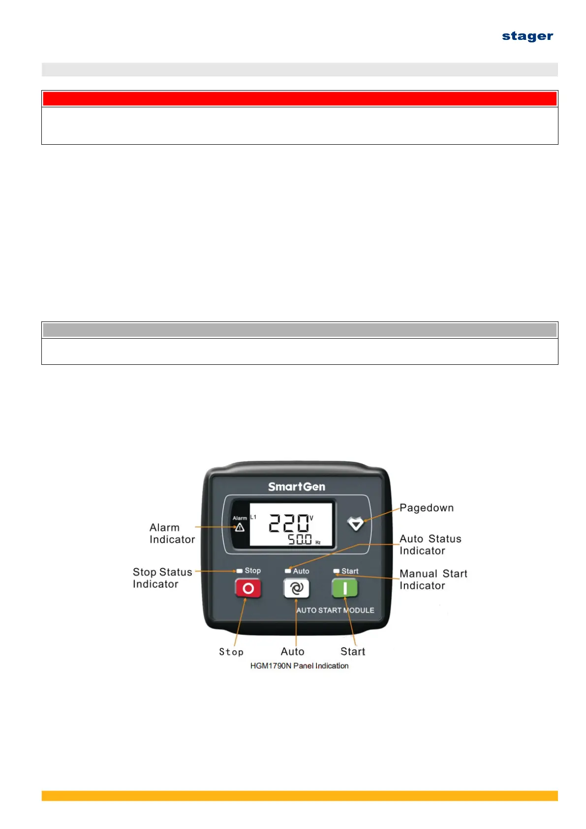 (4) Press “Manual” key on the controller and then press “Start” to have the genset enter self