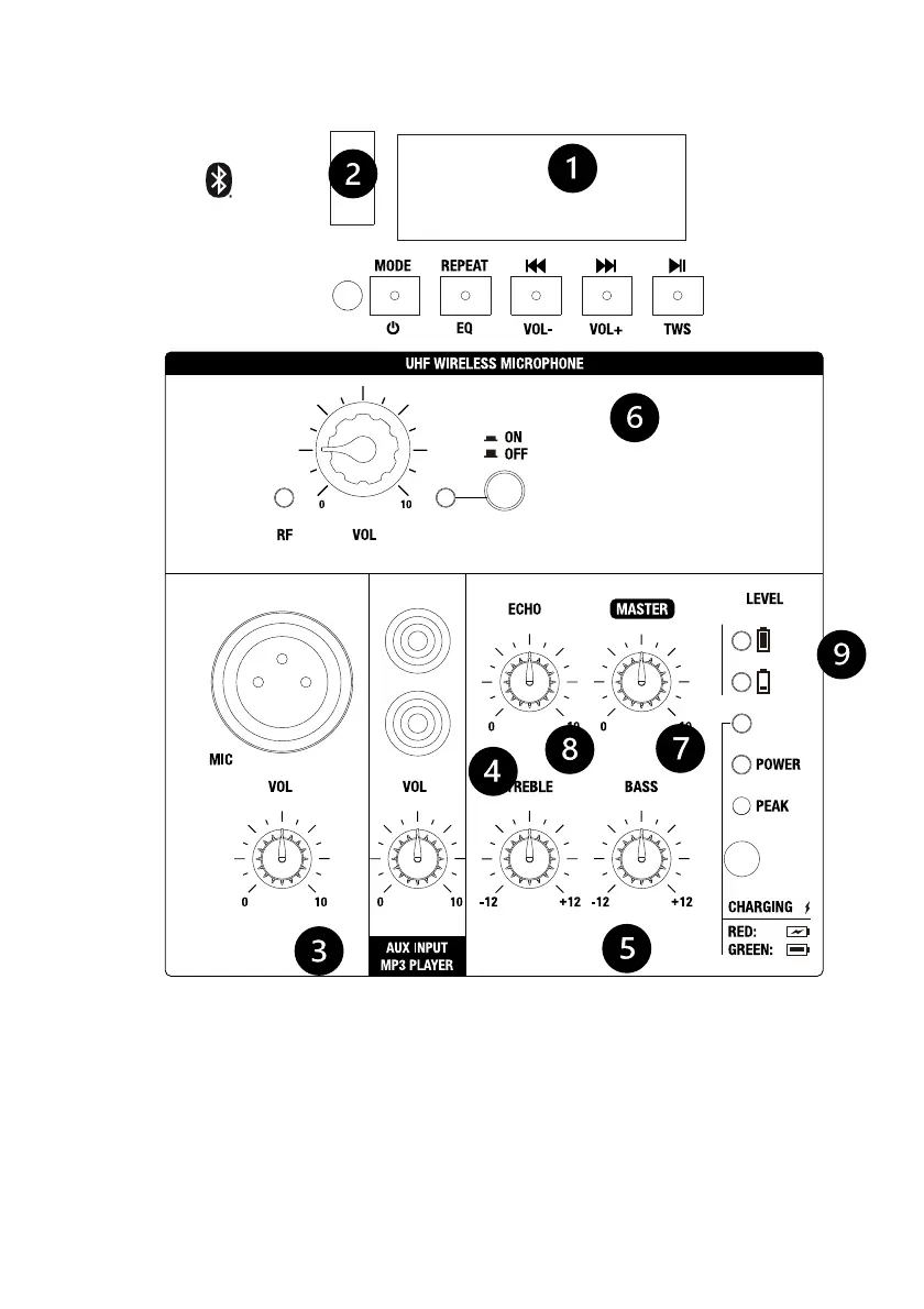 Stagg AS Series - Control Panel AS10 B; AS10 B Controls Overview