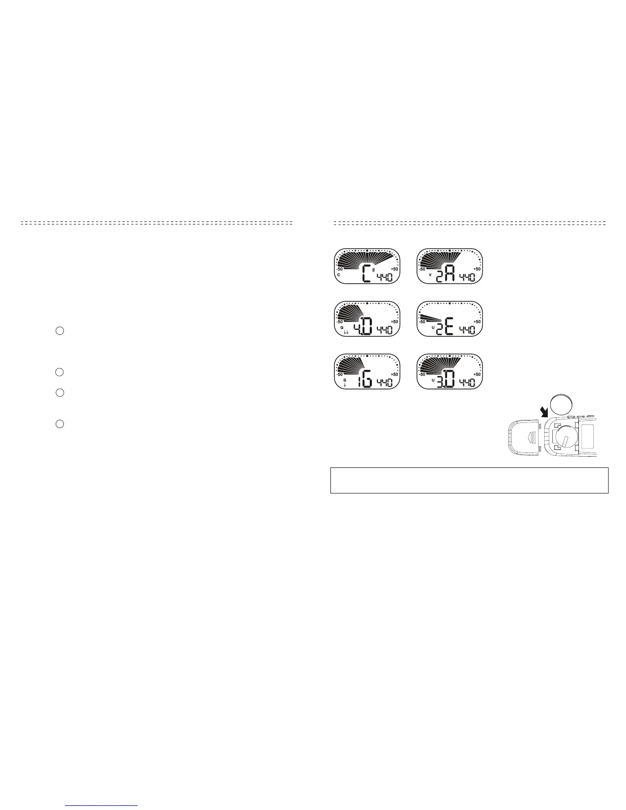 3. Press 1 briey to set mode: Chromatic → Guitar → Bass → Violin →